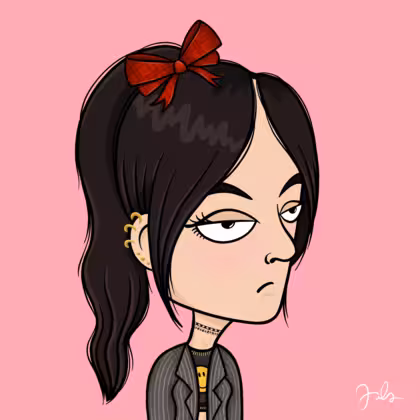 Collection Depressed Citizens Artist Juls Description ART. No team, no project, no future. Depressed Citizens is an urban & existential Art expression on Ordinals. In a parallel universe, "THEI" control us. DC unites against toxic society, encouraging critical thinking. 100% hand made collection that took Juls more than 6 months of daily work. Name Citizen#506 Origin Caucasian non hispanic Gender Woman Necklace Choker Hat Red bow Mustache Beard No beard Glasses No Glasses Earrings Helix ring trio Hair Style High ponytail Clothes Smiley crop top Tattoo No Tattoo Star Background Without stars
