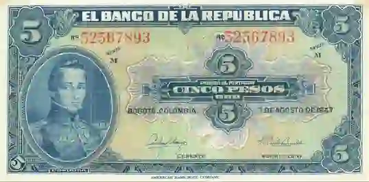 - Colombia (de nuevo) Billete de 5 pesos de 1923