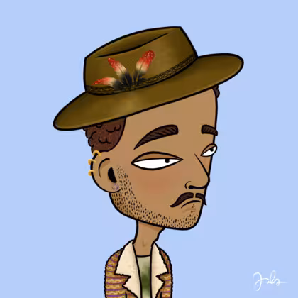 Collection Depressed Citizens Artist Juls Description ART. No team, no project, no future. Depressed Citizens is an urban & existential Art expression on Ordinals. In a parallel universe, "THEI" control us. DC unites against toxic society, encouraging critical thinking. 100% hand made collection that took Juls more than 6 months of daily work. Name Citizen#1536 Origin Hispanic Gender Man Necklace No Necklace Hat Fedora hat Mustache Beard Handlebar & shaved beard Glasses No Glasses Earrings Helix ring trio Hair Style Short tight curls Clothes Green low-neck long-sleeve shirt Tattoo No Tattoo Star Background Without stars
