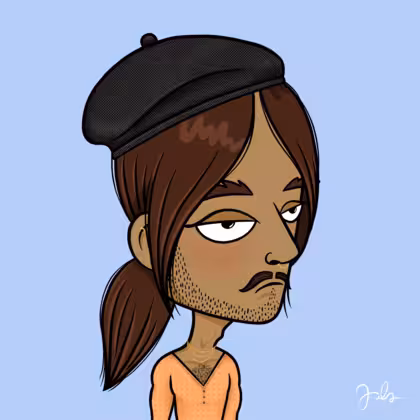 Collection Depressed Citizens Artist Juls Description ART. No team, no project, no future. Depressed Citizens is an urban & existential Art expression on Ordinals. In a parallel universe, "THEI" control us. DC unites against toxic society, encouraging critical thinking. 100% hand made collection that took Juls more than 6 months of daily work. Name Citizen#2770 Origin Hispanic Gender Man Necklace Gold layered necklace Hat Black beret Mustache Beard Handlebar & shaved beard Glasses No Glasses Earrings Rook hoop Hair Style Low ponytail Clothes Peach deep v-neck shirt Tattoo No Tattoo Star Background Without stars
